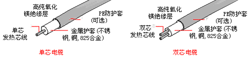 600℃;導(dǎo)體電阻值的范圍從28000Ω/km到19.2Ω/km;礦物絕緣電纜具有優(yōu)良的機(jī)械強(qiáng)度,耐腐蝕。飛拓電氣提供的加熱電纜能滿足不同功率的需要。