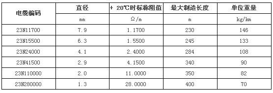 | 代號(hào) | 芯線材質(zhì) | 電阻率Ωmm2/m |